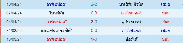 สถิติ 5 นัดหลังสุดของ : อาร์เซน่อล