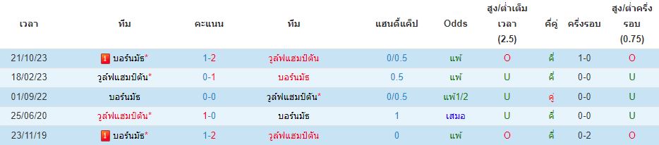 สถิติพบกัน 5 นัดหลังสุดของ : วูล์ฟแฮมป์ตัน -vs- บอร์นมัธ