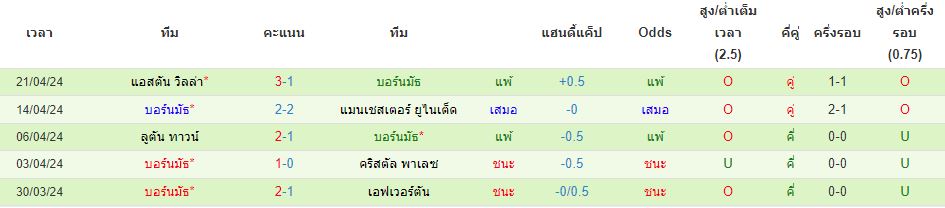 สถิติ 5 นัดหลังสุดของ : บอร์นมัธ