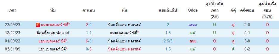 สถิติพบกัน 4 นัดหลังสุดของ : น็อตติ้งแฮม ฟอเรสต์ -vs- แมนฯ ซิตี้