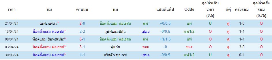 สถิติ 5 นัดหลังสุดของ : น็อตติ้งแฮม ฟอเรสต์