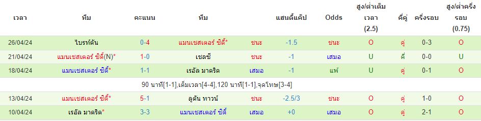 สถิติ 5 นัดหลังสุดของ : แมนฯ ซิตี้