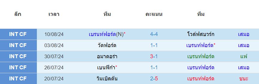 สถิติ 5 นัดหลังสุดของ : เบรนท์ฟอร์ด