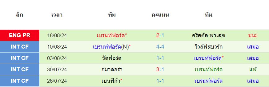 สถิติ 5 นัดหลังสุดของ : เบรนท์ฟอร์ด