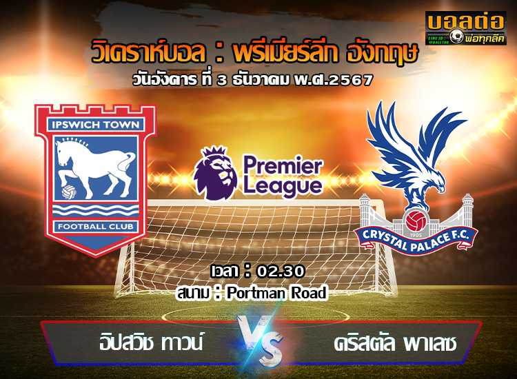 วิเคราะห์บอล พรีเมียร์ลีก อังกฤษ : อิปสวิช ทาวน์ -vs- คริสตัล พาเลซ (03/12/67)