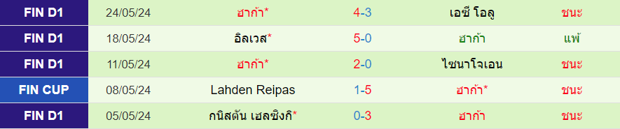 สถิติ 5 นัดหลังสุดของ : ฮาก้า