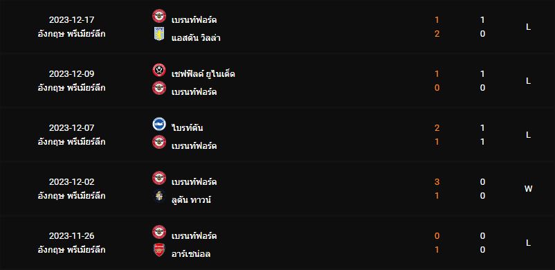 สถิติ 5 นัดหลังสุดของ : เบรนท์ฟอร์ด