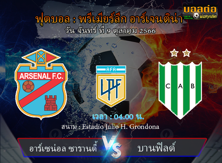 วิเคราะห์บอล ฟุตบอล พรีเมียร์ลีก อาร์เจนติน่า : อาร์เซน่อล ซารานดี้ -vs- บานฟิลด์ (09/10/66)