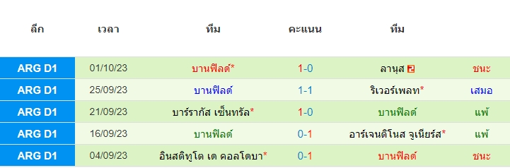 สถิติ 5 นัดหลังสุดของ : บานฟิลด์