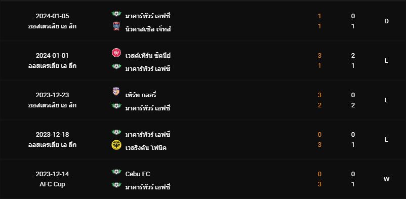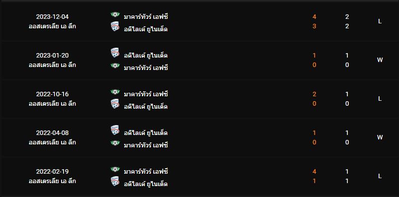 สถิติพบกัน 5 นัดหลังสุดของ : อดิไลเด้ ยูไนเต็ด -vs- แมคอาเธอร์