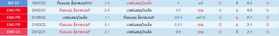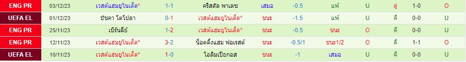 สถิติ 5 นัดหลังสุดของ : เวสต์แฮม