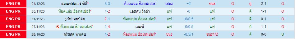 สถิติ 5 นัดหลังสุดของ : สเปอร์ส