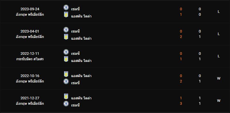 สถิติพบกัน 5 นัดหลังสุดของ : เชลซี -vs- แอสตัน วิลล่า