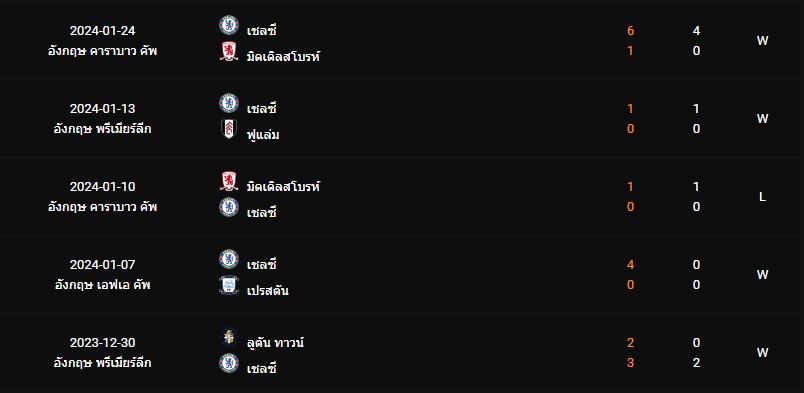 สถิติ 5 นัดหลังสุดของ : เชลซี