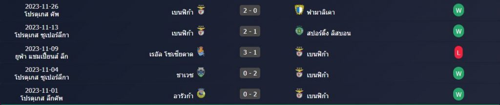 สถิติ 5 นัดหลังสุดของ : เบนฟิก้า