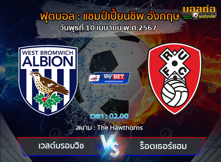 วิเคราะห์บอล ฟุตบอล แชมป์เปี้ยนชิพ อังกฤษ : เวสต์บรอมวิช -vs- ร็อตเธอร์แฮม ( 10/04/67 )