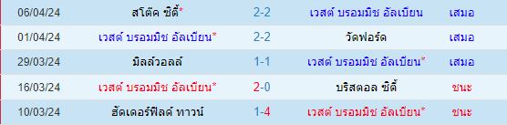 สถิติ 5 นัดหลังสุดของ : เวสต์บรอมวิช