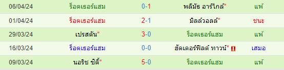 สถิติ 5 นัดหลังสุดของ : ร็อตเธอร์แฮม