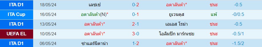 สถิติ 5 นัดหลังสุดของ : อตาลันต้า