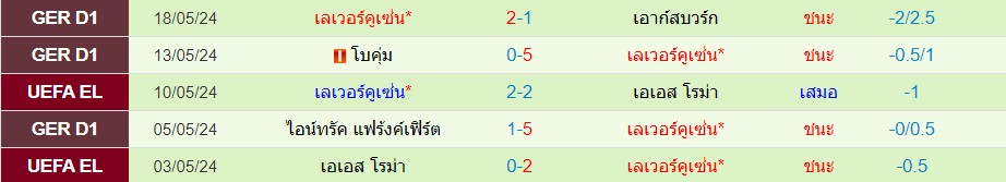สถิติ 5 นัดหลังสุดของ : เลเวอร์คูเซ่น