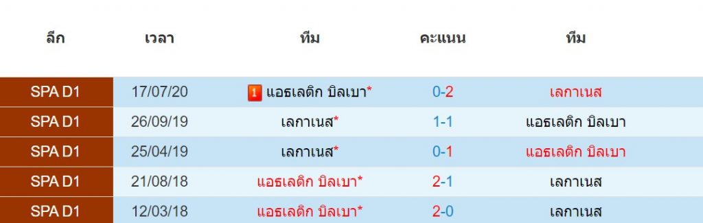 สถิติ 5 นัดหลังสุดของ : เลกาเนส -vs- แอธฯบิลเบา