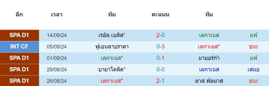 สถิติ 5 นัดหลังสุดของ : เลกาเนส