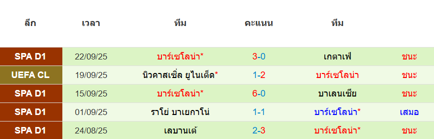 สถิติ 5 นัดหลังสุดของ : บาร์เซโลน่า