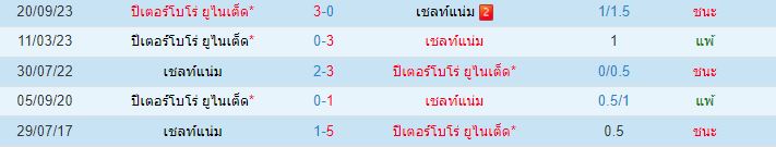 สถิติพบกัน 5 นัดหลังสุดของ : เชลท์แน่ม -vs- ปีเตอร์โบโร่
