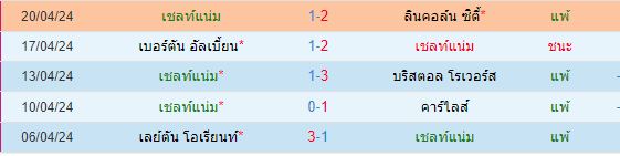 สถิติ 5 นัดหลังสุดของ : เชลท์แน่ม
