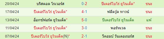 สถิติ 5 นัดหลังสุดของ : ปีเตอร์โบโร่