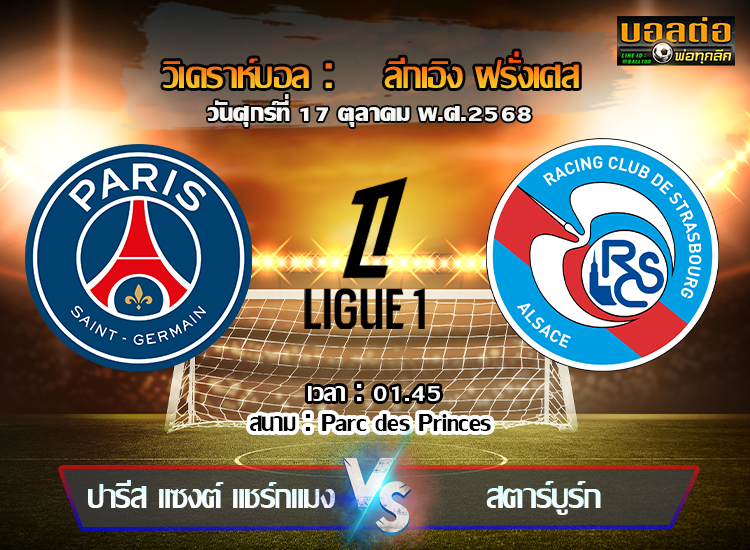 การกลับมาพบกัน ระหว่าง ปารีส แซงต์ แชร์กแมง vs สตาร์บูร์ก สถิติ 3 ครั้งหลัง ที่พบกันล่าสุด ปารีส แซงต์ แชร์กแมง เอาชนะ สตาร์บูร์ก ไป 2 ครั้ง แพ้ 0 ครั้ง เสมอ 1 ครั้ง ทางด้านฝั่งสตาร์บูร์กก็สามารถเรียกฟอร์มเก่งของตัวเองได้อย่างต่อเนื่องใน 2 นัดที่ผ่านมา ฟอร์มสตาร์บูร์ก โดยรวมเกมรุกพวกเขามีความดุดันและเฉียบคมในการทำประตู พวกเขาขึ้นชื่อเรื่องของระบบทีมเวิร์คเป็นหลัก ส่วนเกมรับพวกเขาไม่ค่อยมีข้อผิดพลาดสักเท่าไหร่ในเกมนัดที่ผ่านมา คาดว่านัดนี้กุนซือพวกเขาน่าจะมีการเตรียมแผนมารับมืออย่างรัดกุมแน่นอน พวกเขามีขุมกำลังหลักให้เลือกใช้งานครบทุกตำแหน่งคาดว่าไม่น่ามีปัญหาอะไร หากพวกเขาไม่ทำผิดพลาดกันเสียเอง ส่วนฟอร์มของปารีส แซงต์ แชร์กแมง ในช่วงนี้ ผลงานทั้งในและนอกรังเหย้าทำได้ดีปานกลาง พวกเขาพ่ายแค่นัดเดียว จากการลงบู๊ 5 นัดติดต่อกัน พวกเขาต้องทำทุกวิถีทางเพื่อสะกดชัยชนะเรียกขวัญและกำลังใจกลับมา ซึ่งในนัดนี้พวกเขาจัดขุมกำลังชุดใหญ่ทำศึกอย่างแน่นอน เพื่อสะกดชัยต่อหน้าแฟนๆ แต่จะคว้าชัยได้หรือไม่ต้องติดตาม ฉะนั้นนัดนี้ ทั้งสองทีมใส่เต็มสูบแน่นอน ดังนั้นด้วยเรตราคาเปิด ปารีส แซงต์ แชร์กแมง ราคา -1.5/2 มองว่าน่าเชียร์ปารีส แซงต์ แชร์กแมง มีโอกาสลุ้นเฉือนหืดแน่นอน