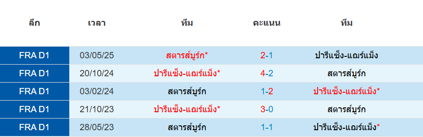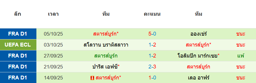 สถิติ 5 นัดหลังสุดของ : เปแอสเช -vs- สตราส์บูร์ก