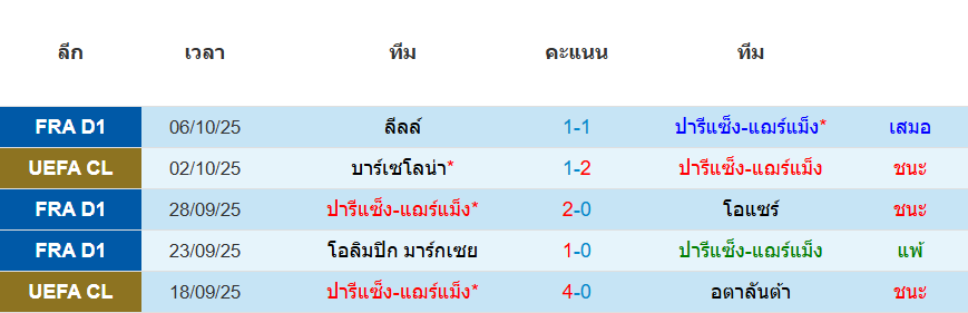 ความพร้อมก่อนเกม : ปารีส แซงต์ แชร์กแมง