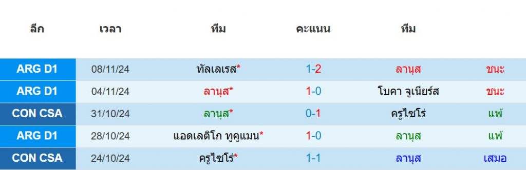 สถิติ 5 นัดหลังสุดของ : ลานุส