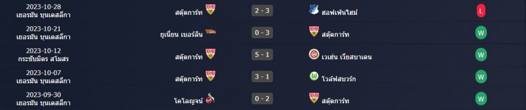 สถิติ 5 นัดหลังสุดของ :สตุ๊ตการ์ต