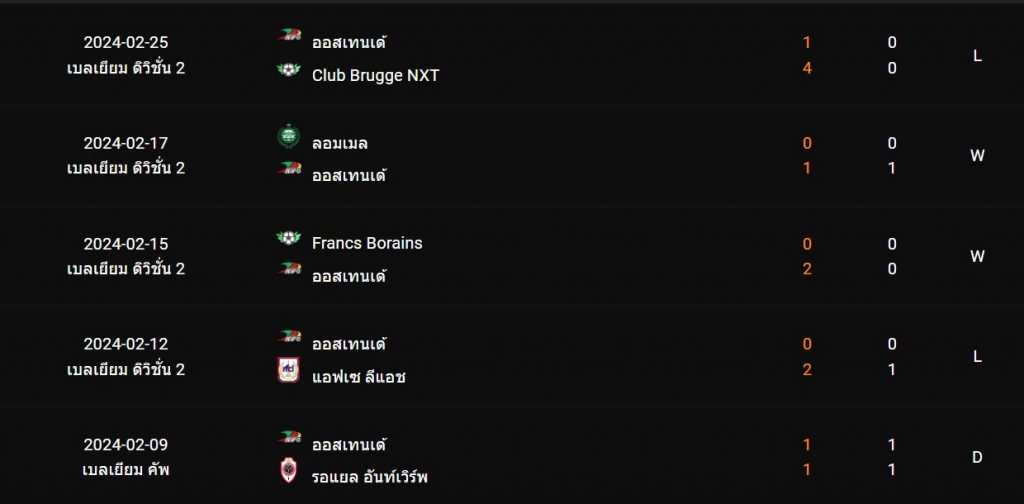 สถิติ 5 นัดหลังสุดของ : ออสเทนเด้