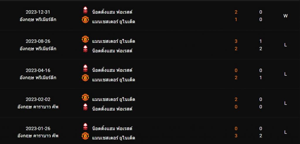 สถิติพบกัน 1 นัดหลังสุดของ : น็อตติ้งแฮม ฟอเรสต์ -vs- แมนฯ ยูไนเต็ด