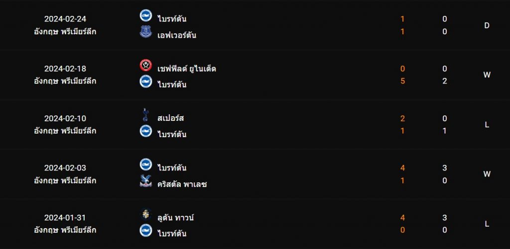 สถิติ 5 นัดหลังสุดของ : ไบรท์ตัน