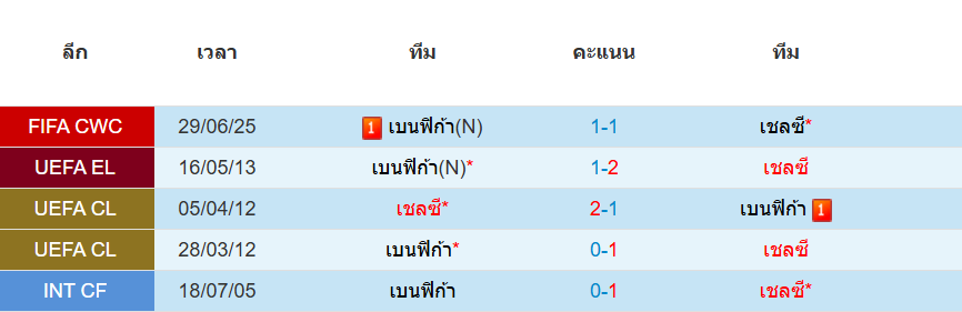 สถิติ 5 นัดหลังสุดของ : เชลซี vs เบนฟิก้า