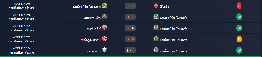 สถิติ 5 นัดหลังสุดของ : แบล็คเบิร์น