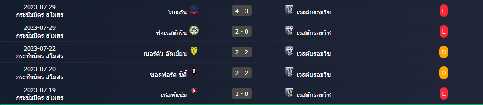 สถิติ 5 นัดหลังสุดของ : เวสต์บรอมวิช