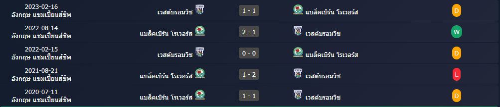 สถิติพบกันหลังสุดของ : แบล็คเบิร์น -vs- เวสต์บรอมวิช