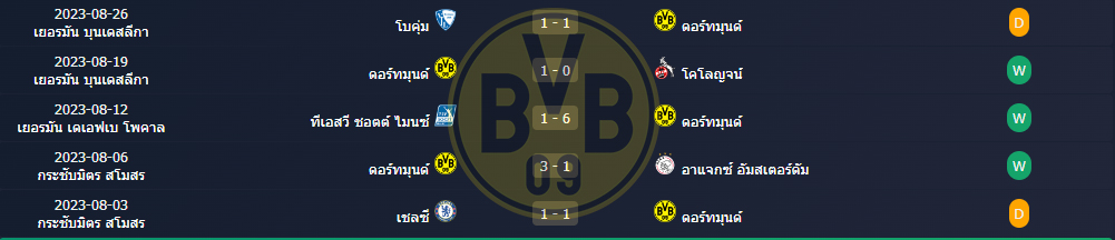 สถิติ 5 นัดหลังสุดของ : โบรุสเซีย ดอร์ทมุนด์