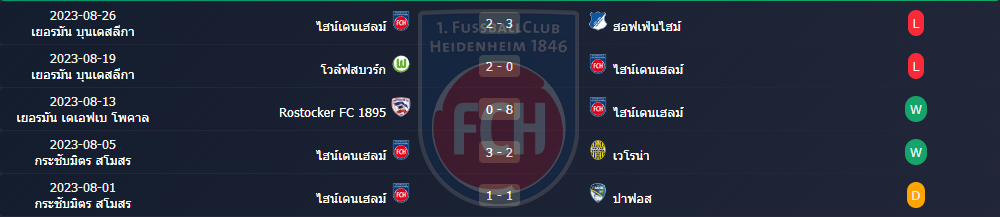 สถิติ 5 นัดหลังสุดของ : ไฮน์เดนเฮลม์