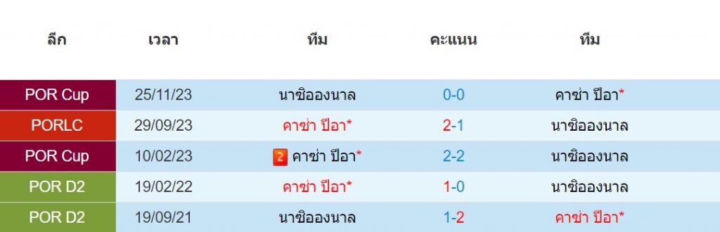 สถิติ 5 นัดหลังสุดของ : คาซ่า เพีย -vs- นาซิอองนาล