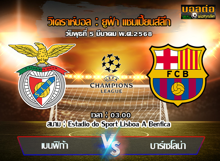 วิเคราะห์บอล แชมเปี้ยนส์ ลีก : เบนฟิก้า -vs- บาร์เซโลน่า (05/03/68)