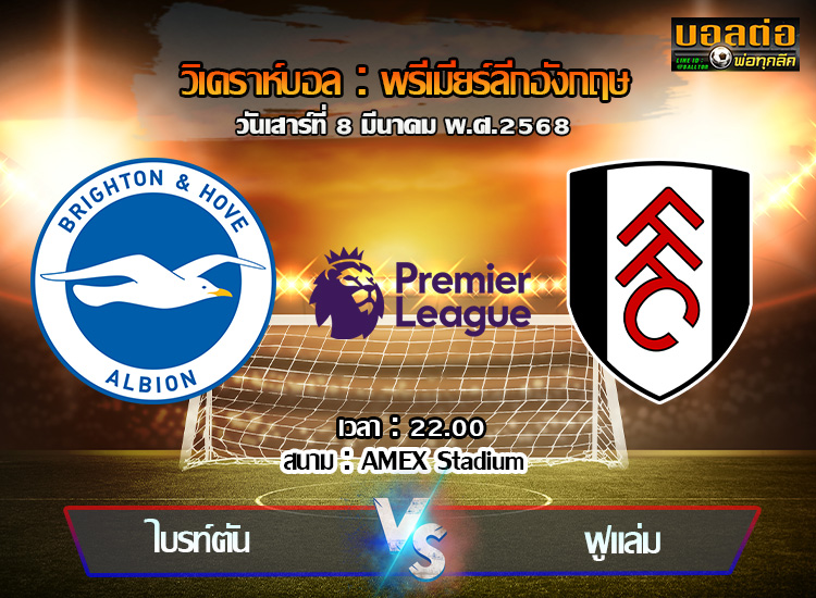 วิเคราะห์บอล พรีเมียร์ลีก : ไบรท์ตันฯ -vs- ฟูแล่ม (08/03/68)