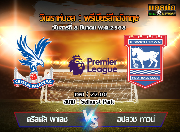 วิเคราะห์บอล พรีเมียร์ลีก : คริสตัล พาเลซ -vs- อิปสวิช (08/03/68)