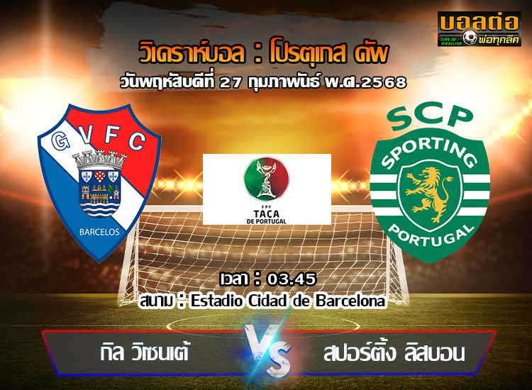 วิเคราะห์บอล โปรตุเกส คัพ : กิล วิเซนเต้ -vs- สปอร์ติ้ง ลิสบอน (27/02/68)