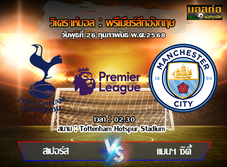 วิเคราะห์บอล พรีเมียร์ลีก : สเปอร์ส -vs- แมนฯซิตี้ (26/02/68)